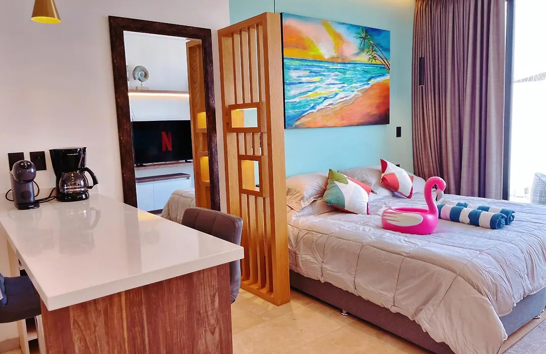 Si te alojas en el New Studio With King Bed And Balcony In 4Thfloor Playa del Carmen, podrás relajarte en su terraza. El apartamento se encuentra a 20 minutos a pie del Acuario de Playa. El apartamento ofrece a sus huéspedes comodidades como servicio de planchado, una plancha y tabla de planchar, una lavadora para mejorar su confort durante la estancia.